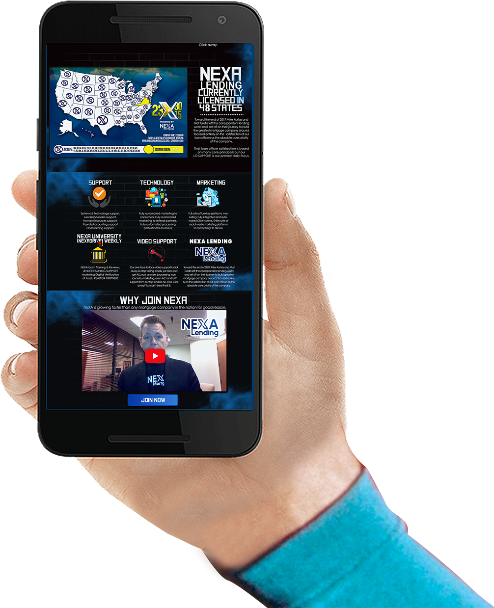 • NEXA Lending is a business of people independently working together to provide all of the benefits you can expect from a fortune 500 company. (Medical, dental, matching 401k, life insurance, etc.)